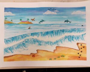 Dann sind sie in diesem Workshop genau richtig! In zwei Stunden malen wir gemeinsam eine tolle Strandszene mit Meeresbrandung. Wir leiten alle Schritte an, sodass am Ende des Workshops jedes Kind ein tolles Bild mit nach Hause nehmen kann: