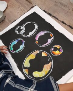 Seifenblasen mit Acryl- und Wasserfarben malen